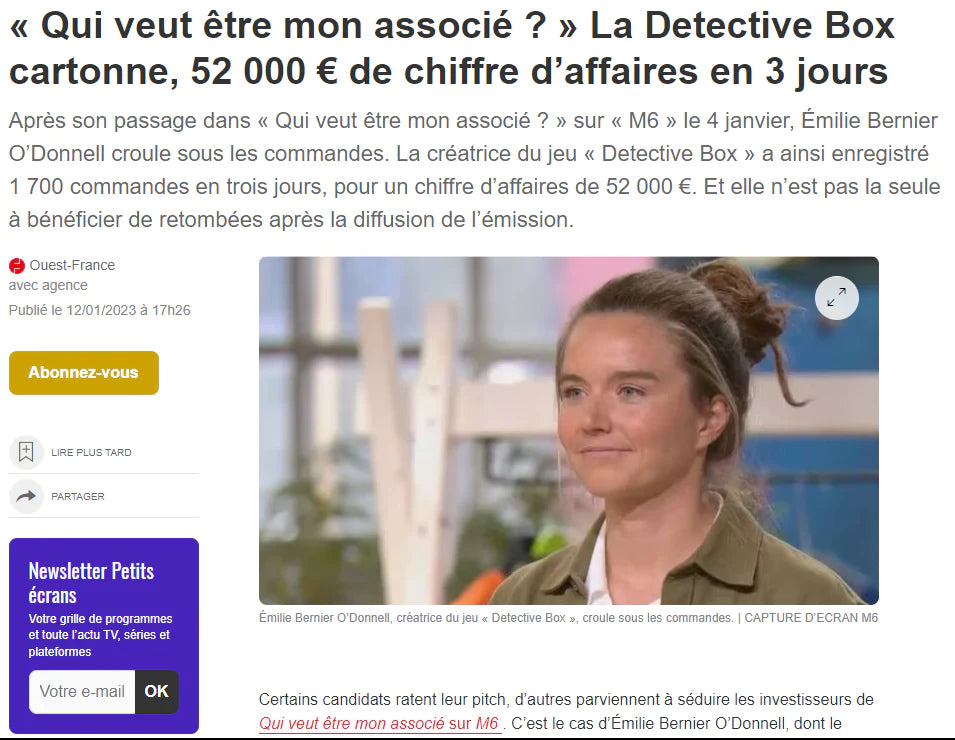 "Qui veut être mon associé ? La Detective Box cartonne, 52 000 € de chiffre d’affaires en 3 jours"